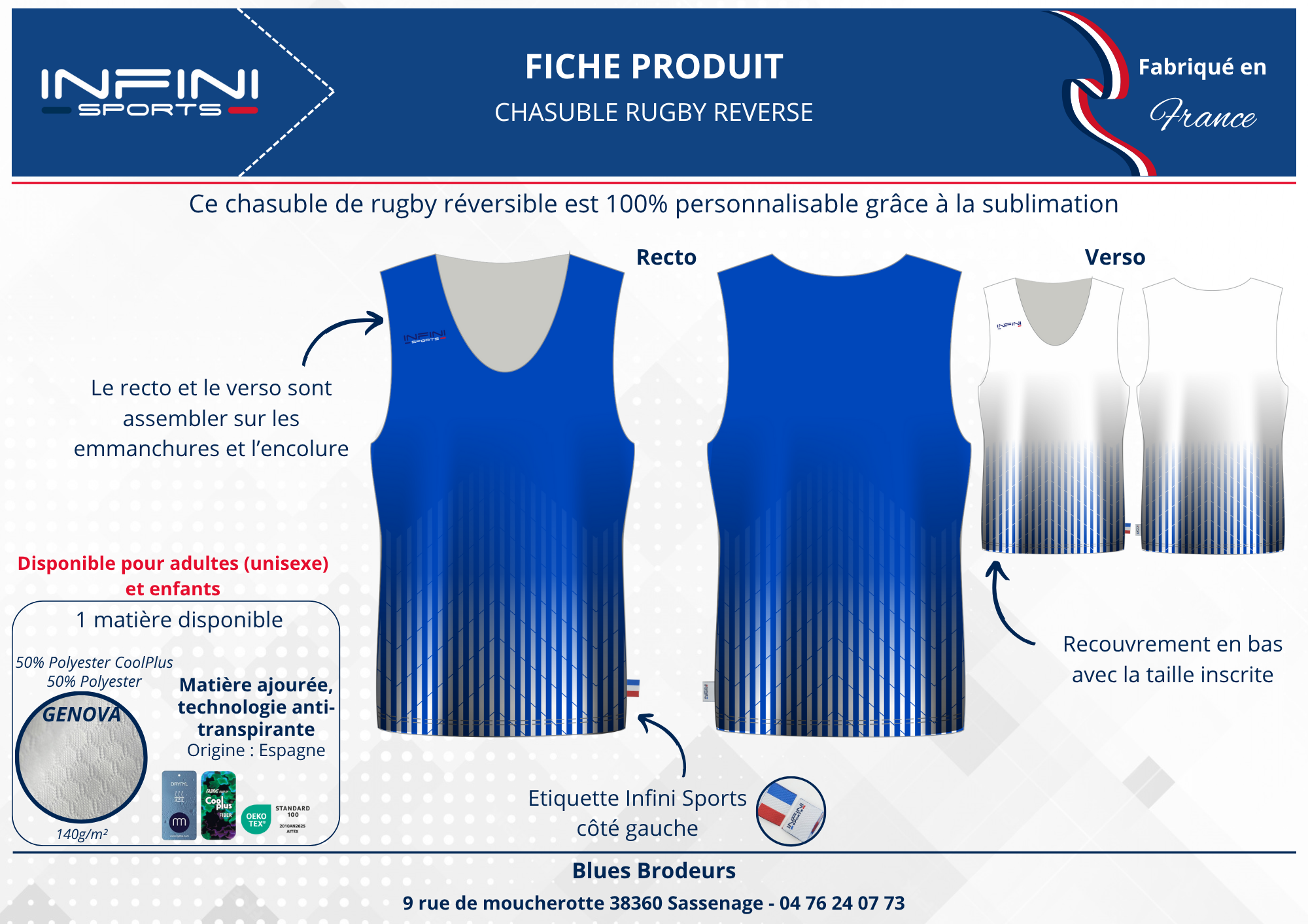 Le tarif comprend le maillot 100% personnalisé fabriqué en France, les logos et sponsors sur la base d’un visuel choisi parmi la collection ci-dessus + 3 BAT gratuits (au delà : 10 € TTC par BAT supplémentaire) – Pour une création originale – Frais techniques : 75 € TTC